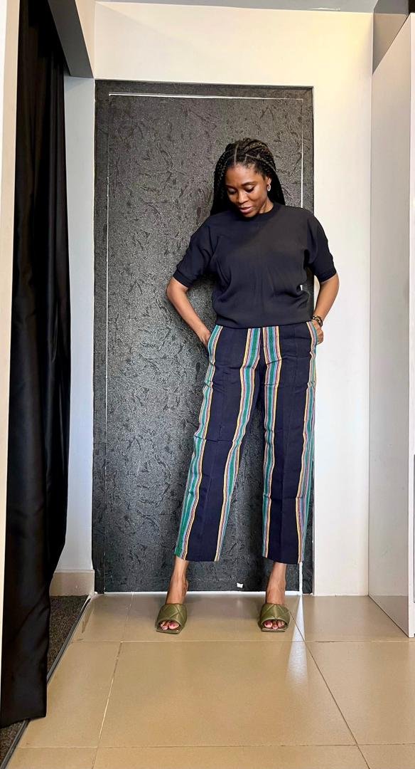 Unisex pants made with thick woven cotton fabric (aso oke).