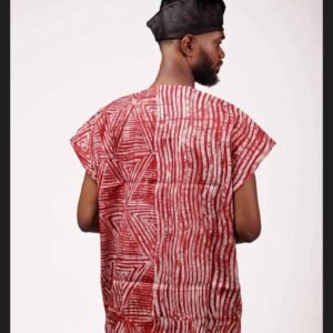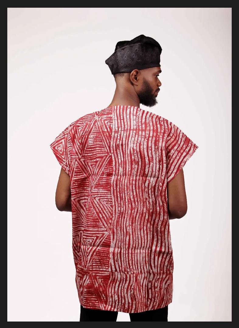 Unisex danshiki offers relaxed comfort, made from hand-dyed Adire cotton.