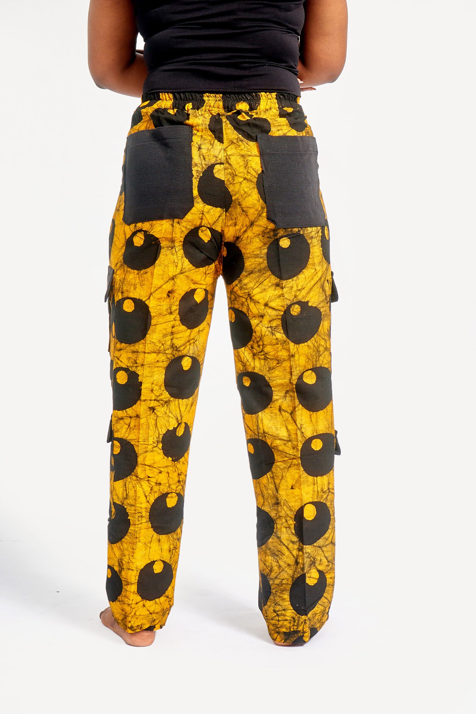 These unisex cargo pants feature double pockets  with aso oke contrast.