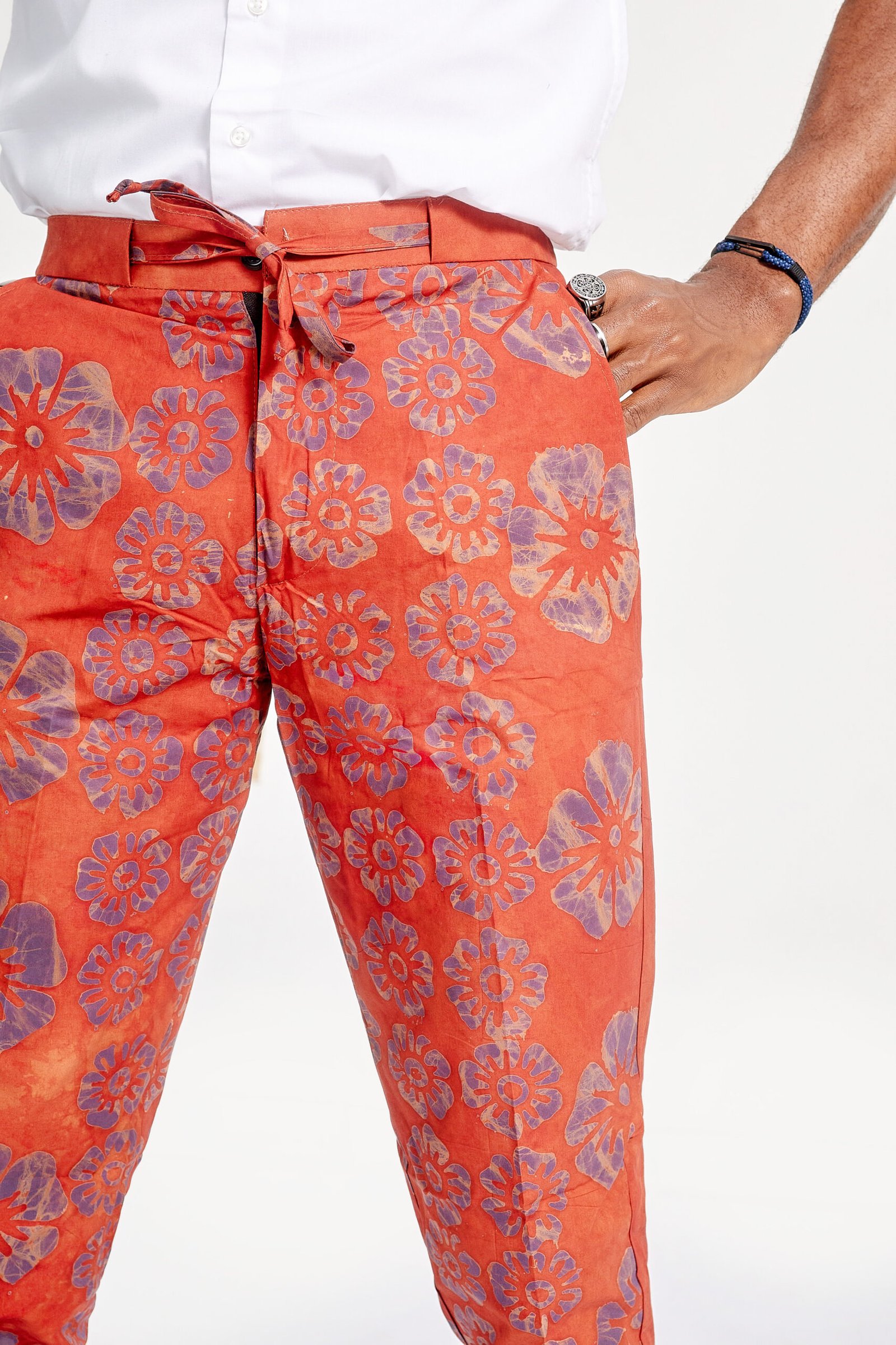 Made from hand-dyed Adire cotton fabric.